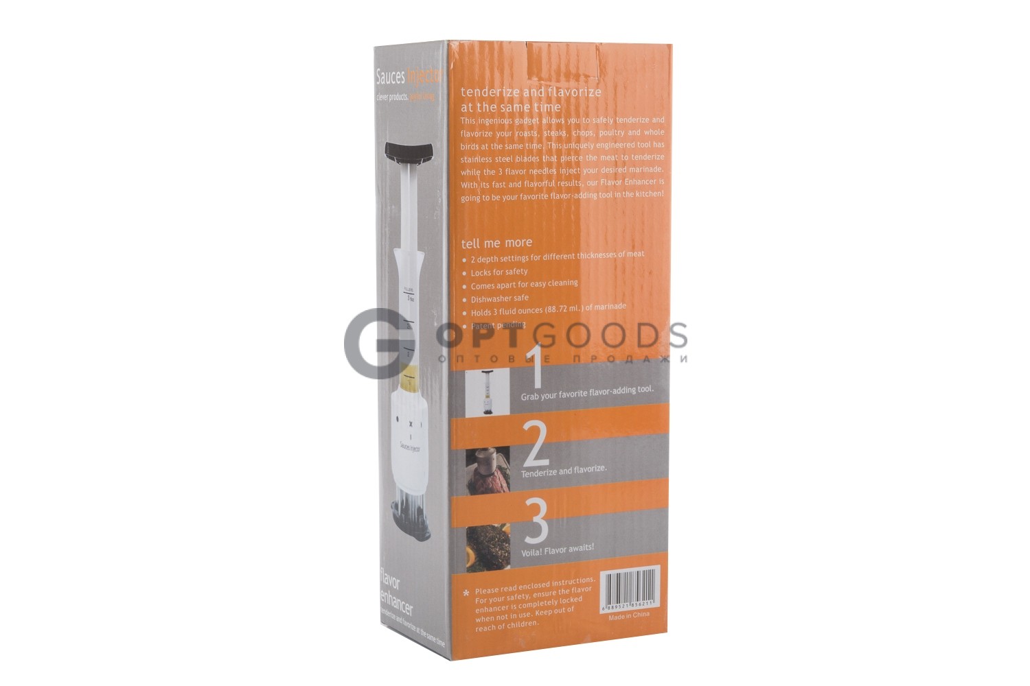 Инжектор для мяса – прибор для отбивания мяса специально создан для упрощения задачи приготовления битков или для размягчения мяса для приготовления самых разнообразных блюд. Состоит из нержавеющих острых иголок "гвоздей", которые пробивают волокна и размягчают мясо, а защитная пластина не дает прибору застрять или оставить куски мяса на них. Через маленькие проколотые отверстия специи и маринад проникают в мясо быстрее, время для маринования сократится в разы, мясо при этом будет мягким и сочным. Удобная ручка легко размещается в руке и уберегает прибор от падения на пол. Мясо не становится плоским, как при использовании кухонного молотка, оно получается более сочным и не требует много времени для прожарки. Приготовленное мясо получается более насыщенным вкусом, мягким и просто тает во рту.
